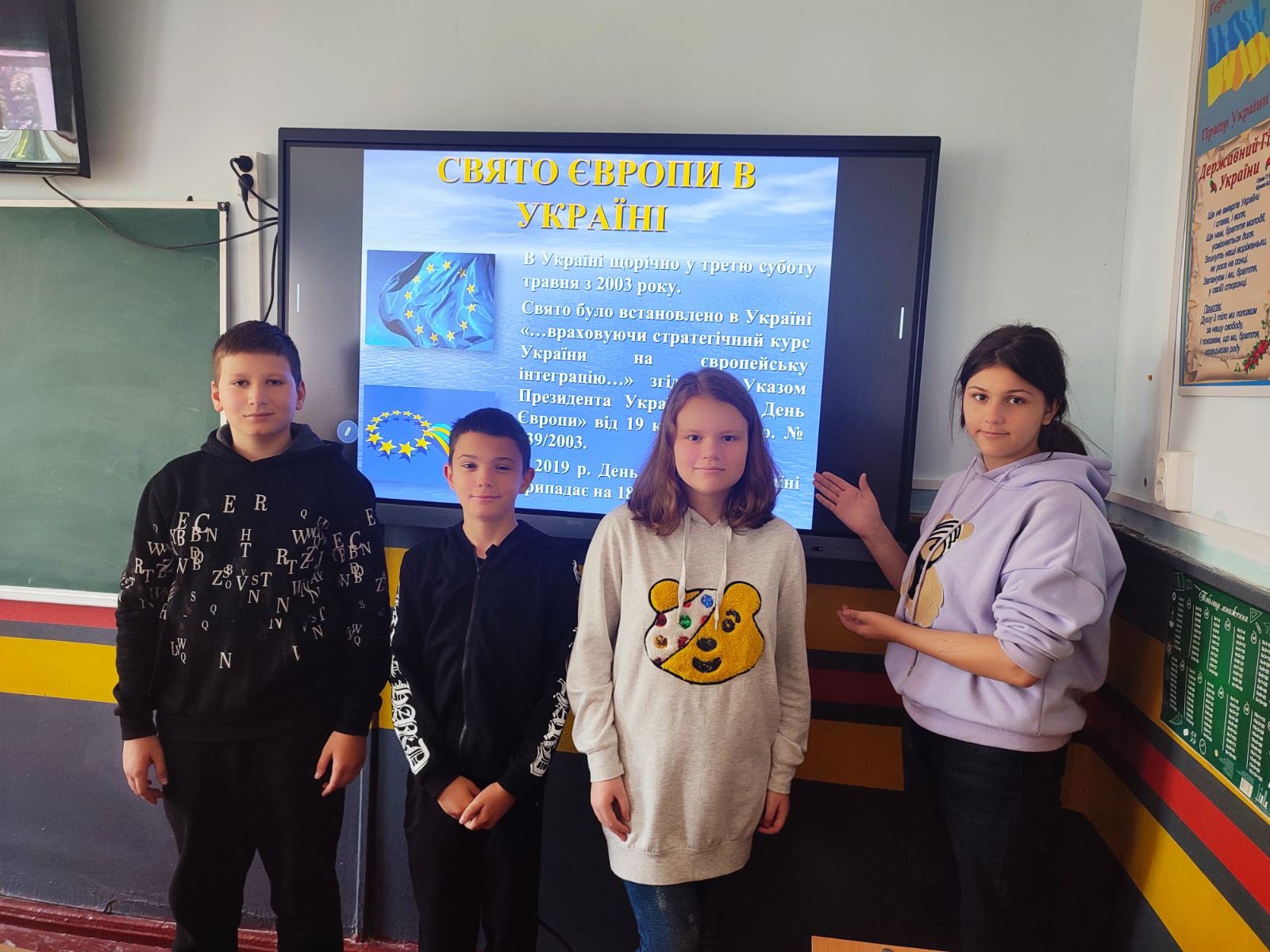 У 5-Б класі відбулася тематична година спілкування «9 Травня - День Європи». Ми дізналися, що Україна є частиною великої європейської родини, яка цінує мир, дружбу та співпрацю між країнами. Учні переглянули презентацію про європейські країни, їхні символи та традиції. Діти з цікавістю ділилися знаннями, а також розфарбовували прапори країн Європи.